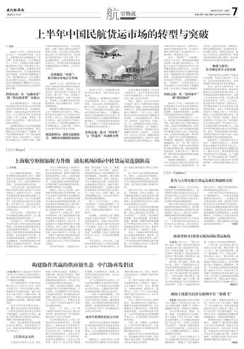 □文茵 2025年上半年,中国民航货运业交出了一份亮眼的答卷。这背后,是跨境电商与高端制造业“双引擎”的强...