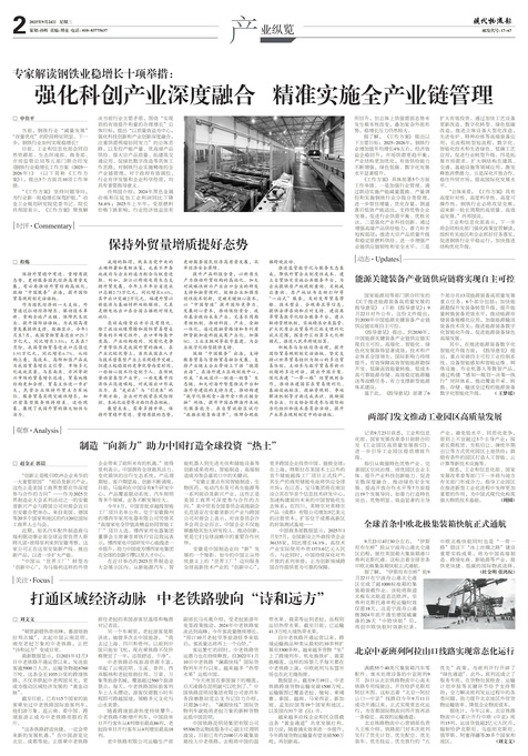 □ 申佳平 当前,钢铁行业“减量发展”“存量优化”的阶段特征明显。下一步,钢铁行业如何实现稳增长? 日...