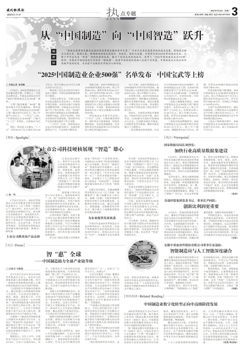“2025中国制造业企业500强”名单发布 中国宝武等上榜