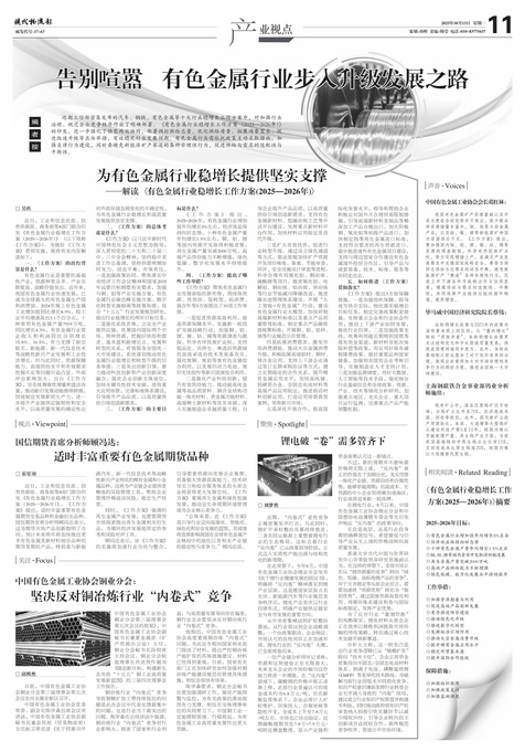 □吴欣 近日,工业和信息化部、自然资源部、商务部等8部门联合印发《有色金属行业稳增长工作方案(2025—2...
