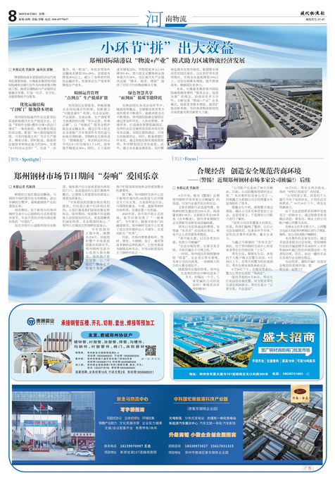 □本报记者代振锋 通讯员郭颖 降低物流成本是提高经济运行效率的重要举措,中豫港务集团郑州国际陆港航空...