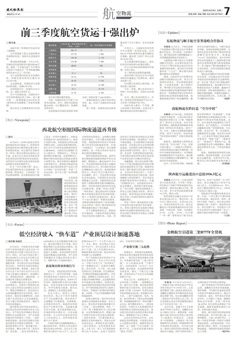 本报讯10月17日,记者从陕西省人民政府获悉,今年前三季度,西安航空口岸新开和恢复国际货运航线5条,国际...