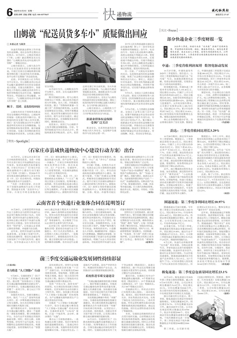 ■ 申通:三季度营收利润双增 数智化驱动发展