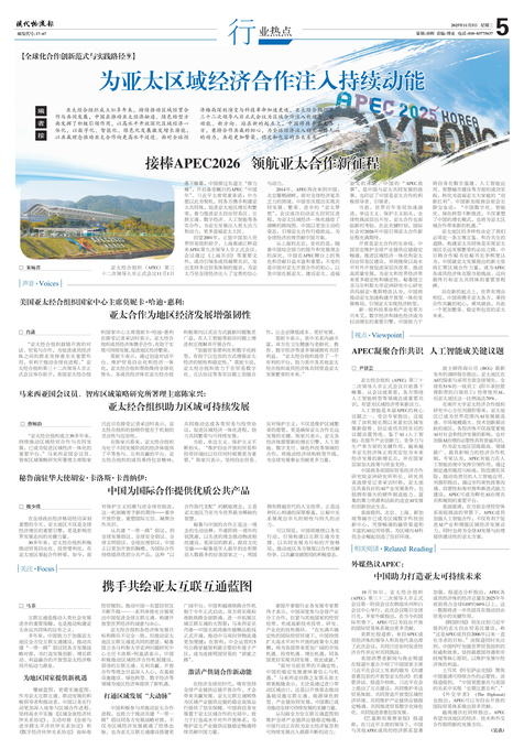 编者按 亚太经合组织成立30多年来,持续推动区域经贸合作与共同发展,中国在推动亚太经济融通、绿色转型...