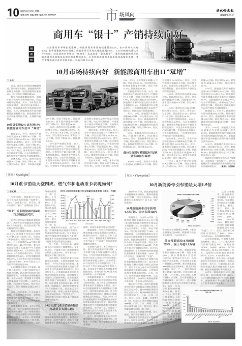编者按 10月商用车市场表现亮眼,新能源商用车国内销量暴涨52%,出口同环比双超20%;重卡销量飙升60%领...