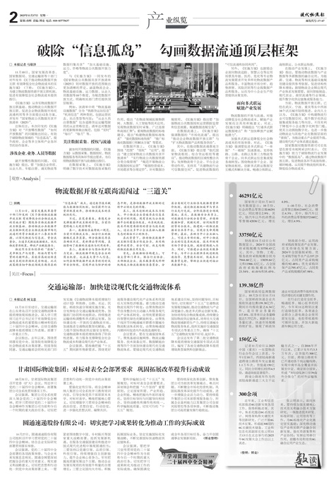 □ 田鹏 11月10日,国家发展改革委等十部门印发的《关于推动物流数据开放互联有效降低全社会物流成本的实...