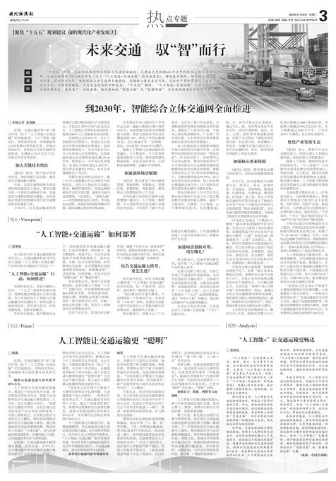 编者按 “十四五”时期,我国加快推动智能科技与交通运输融合,已建成总里程超600万公里的综合立体交通网...