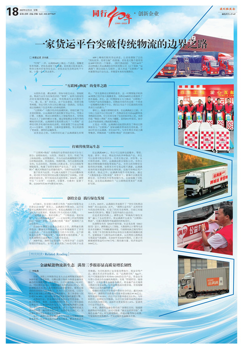 □本报记者卫小波 “叮咚”一声,运满满APP上弹出一个消息,提醒老张有货源,老张迅速按下抢单键,系统提示抢...