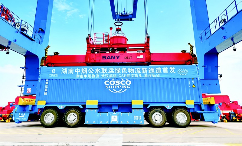 本报讯12月4日,由湖北中远海运物流供应链承运的湖南中烟项目正式首发。这不仅打通了串联华中与东北的物流新通道,更开创了全国烟草行业集装箱公水联运新模式,为烟草物流运输升级注入满满新动能。通道首发仪式在湖北武汉中远海运港口举行。