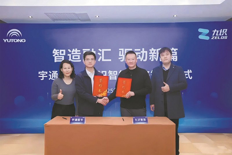 本报讯12月4日,宇通商用车与自动驾驶科技公司九识智能在宇通营销中心正式签署战略合作协议,联合开发无人物流车,这次强强联合,是对国家“交通强国”“智能制造”战略的积极响应,更是对物流行业降本增效、绿色升级时代命题的率先解答。