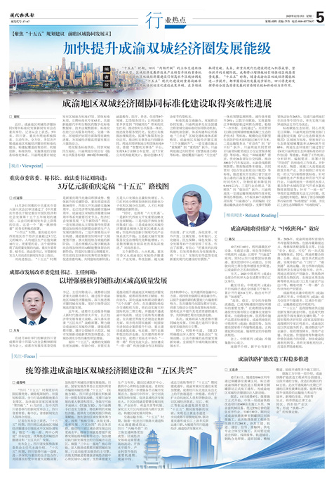 ■ 加快提升成渝双城经济圈发展能级