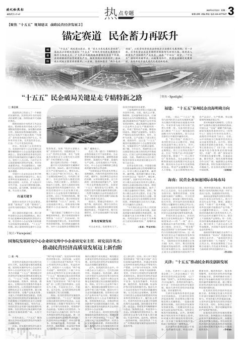 编者按 “十五五”规划建议提出,要“更大力度发展民营经济”,各地正以前瞻视角谋划“十五五”时期民营经济发...