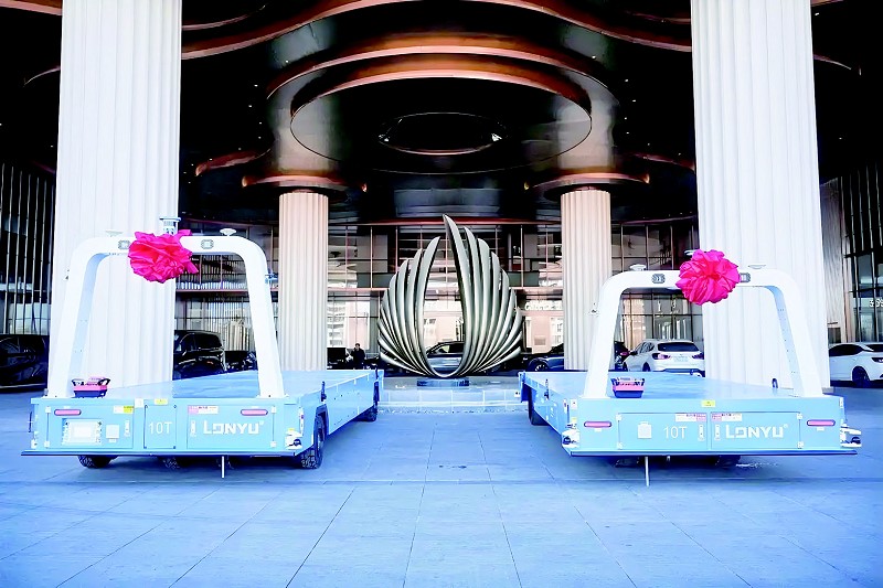 活动中,“誉麒麟”与“誉蛟龙”两大系列新产品重磅揭晓,“麒麟系”与“誉蛟系”作为朗誉机器人推出的新一代无人重载运输车,可广泛应用于大型园区、厂区、封闭半封闭道路场景的室外跨车间短途倒运,是“数据+AI+载体”的实体典范,将AI能力注入无人重载运输车设备。