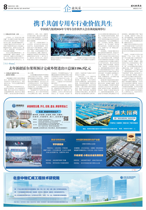 □ 本报记者任小红 王茜 1月28日,以“科技引领全链共赢”为主题的中国重汽集团2026年专用车合作伙伴大会于“...
