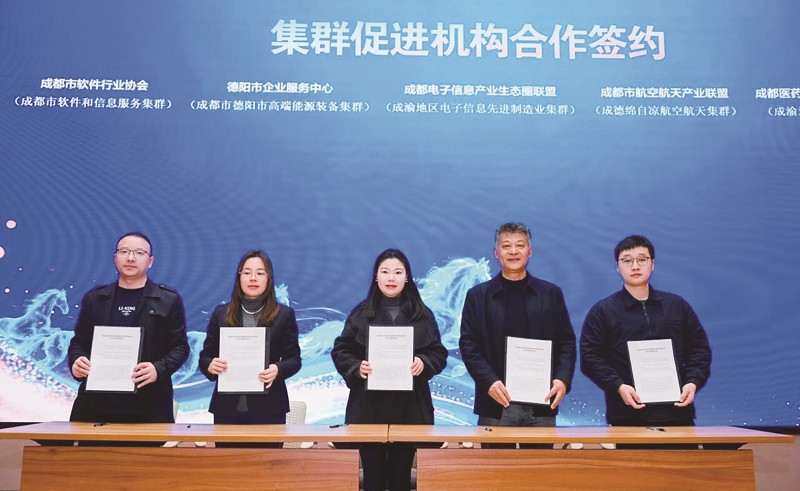 本报讯日前,成都市航空航天产业2025生态大会在中国商飞四川公司大飞机示范产业园召开。大会期间,成都市软件和信息服务集群,成都市、德阳市高端能源装备集群,成渝地区电子信息先进制造集群,成德绵自凉航空航天集群,成渝地区生物医药集群5个国家级先进制造业集群促进组织签订战略合作协议。