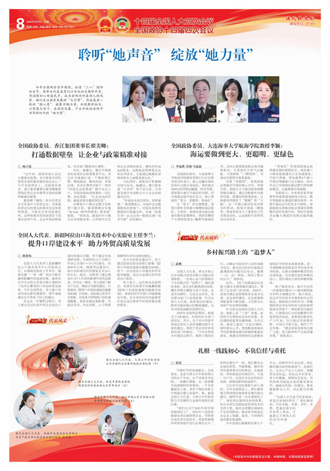 今年全国两会召开期间,恰逢“三八”国际妇女节,各界女代表委员们以专业担当履职尽责,用温情初心传递民声,...
