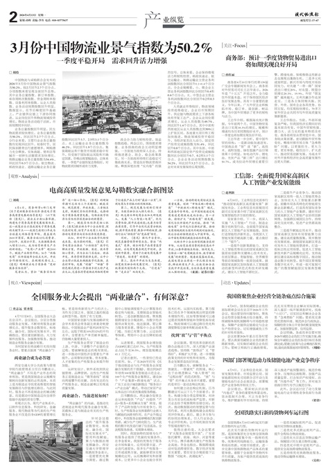 □胡焓 中国物流与采购联合会发布的2026年3月份中国物流业景气指数为50.2%,较2月回升2.7个百分点。分项...