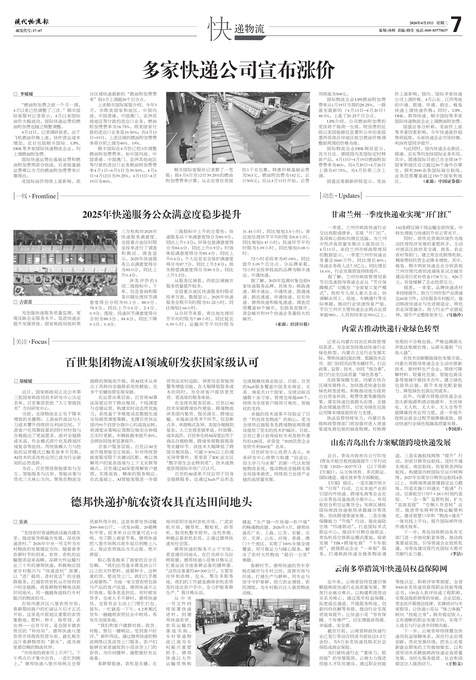 □吴讯 “支持农村寄递物流设施共建共享,推动客货邮融合发展,深化快递进村。”2026年中央一号文件为乡村...