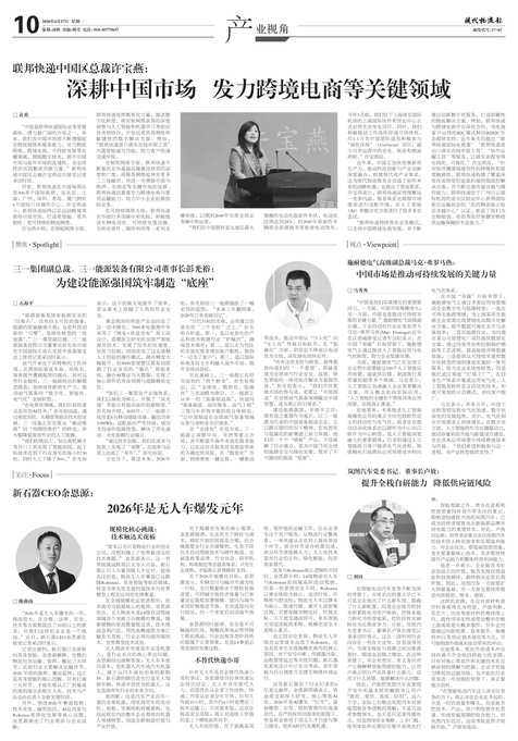 “联邦快递持续优化业务模式,以支持中国跨境电商发展,并不断推出创新数字化服务,打造前瞻性的物流解决方案。例如,联邦快递与跨境电商平台深化合作,为电商客户从传统B2C模式转向B2B2C生态提供支持。近年来先后推出‘联邦快递国际电商逸’‘联邦快递进出口清关在线申报工具’‘协作运输工具’等服务,让清关流程变得在线化、可视化。”许宝燕说,“针对医疗健康领域货件的特殊性和温度敏感性,联邦快递构建了覆盖深度冷冻到受控室温的端到端温控解决方案,并不断完善冷链设施与操作能力。联邦快递位于广州白云国际机场的亚太区转运中心获得国际航空运输协会的‘医药物流独立验证卓越中心’认证,彰显了我们为生物制剂、疫苗等医疗保健货物提供运输保障的专业能力。”