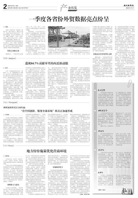 □ 刘萌 各地一季度外贸“成绩单”陆续公布。据记者统计,截至4月22日,全国已有29个省份公布了一季度外贸...
