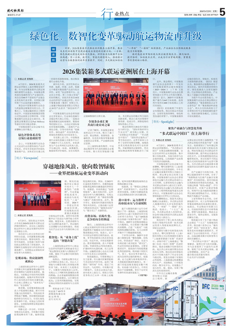 编者按 日前,2026集装箱多式联运亚洲展在上海开幕,展会及系列活动集中呈现出航运业演进的关键方向:一...
