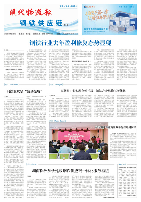 本报讯 (记者 代振锋) 4月25日,由现代物流报社牵头打造的“河南钢铁供应链服务平台”在河南郑州正式揭牌。...